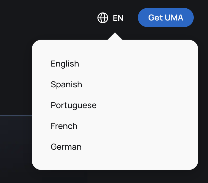 Klik op de UMA-startpagina op het wereldbolpictogram in de rechterbovenhoek (naast UMA downloaden).